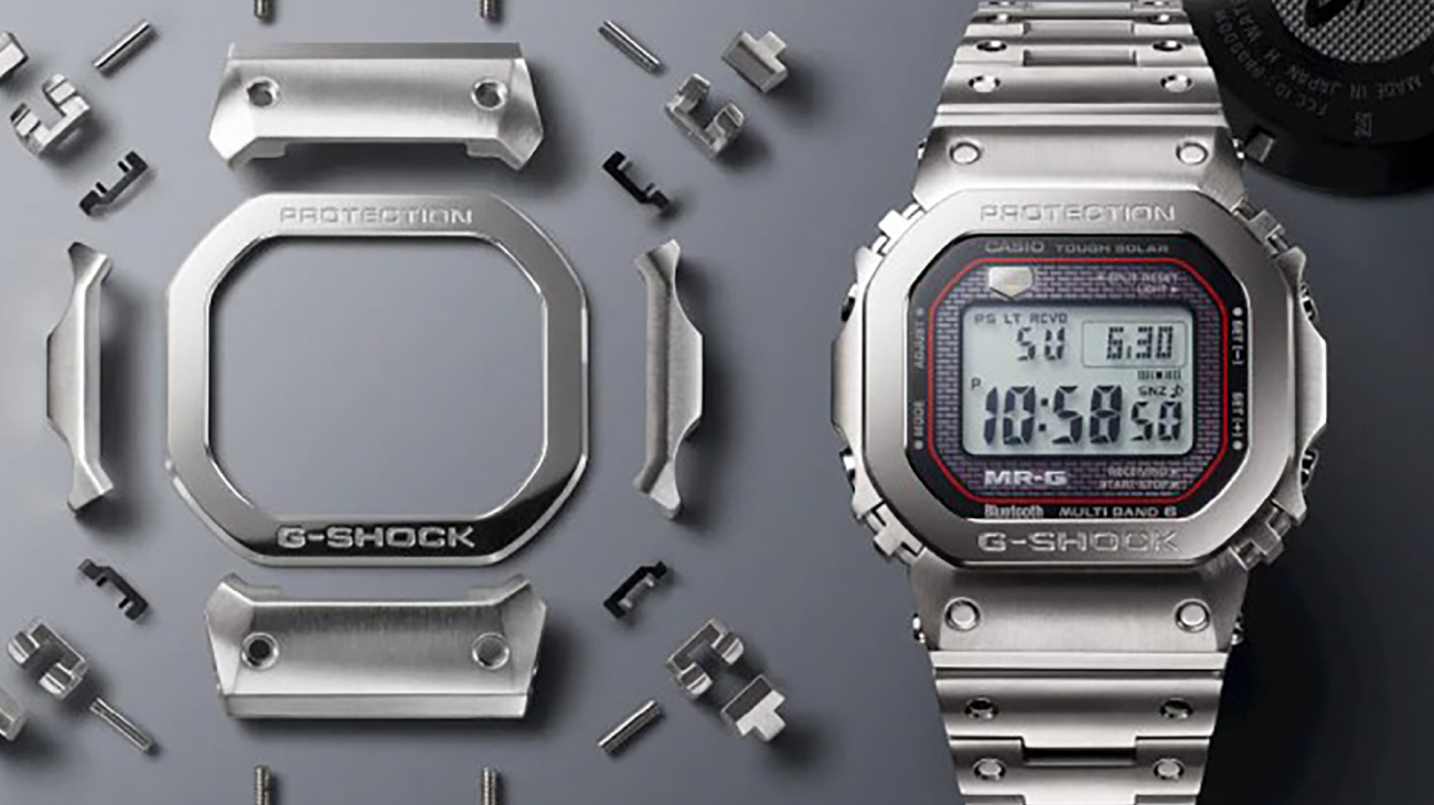 G-SHOCKの最高峰MR-Gシリーズに、ブランドのオリジンである「DW-5000」のDNAを継承した「MRG-B5000」が誕生。通常一体成形されるベゼルを25ものパーツに細分化。細部まで研磨処理を施し、ミラー処理に適した高硬度材「COBARION®」「DAT55G」を用いることで、耐衝撃性能と高品位外装の両立を実現しました。