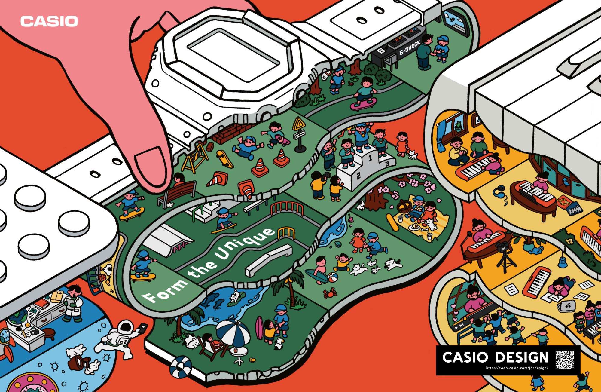 カシオデザインのPhilosophyである「Form the Unique」をデザイナーが表現しました。